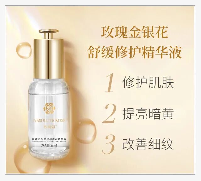 听着,想要皮肤好的人,就在夜间使用这款玫瑰金银花精华液,绝不会让你失望!