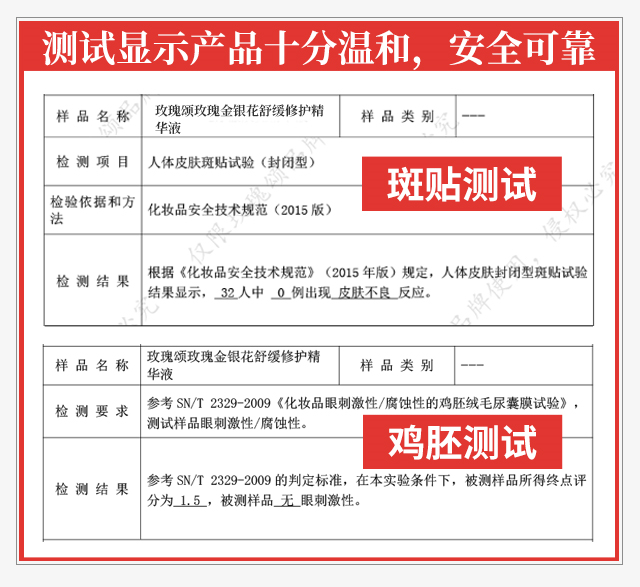 它还做了权威机构人体斑贴和鸡胚检测,结果显示产品温和有效,敏感肌的姐妹值得一试!