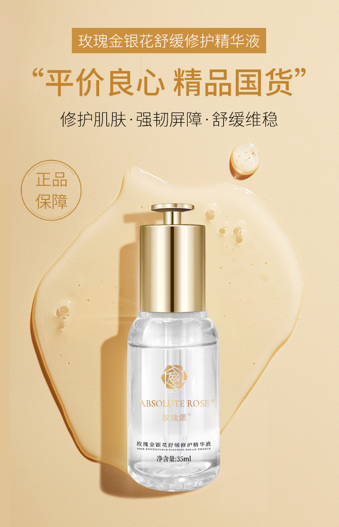 现在,你是不是迫不及待的想要试试这款玫瑰金银花舒缓修护精华液了?