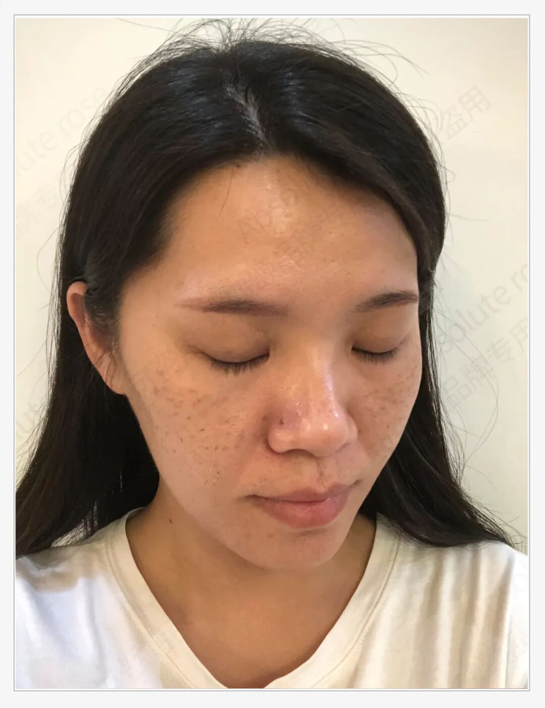 使用一个月,黑色素淡化,斑点改善,气色越来越好,以前谁敢想到如今的她能有这么大的变化:玫瑰面膜膏非常温和,没有任何刺激,我们找了李女士来做实验,使用前,她皮肤是这样的: